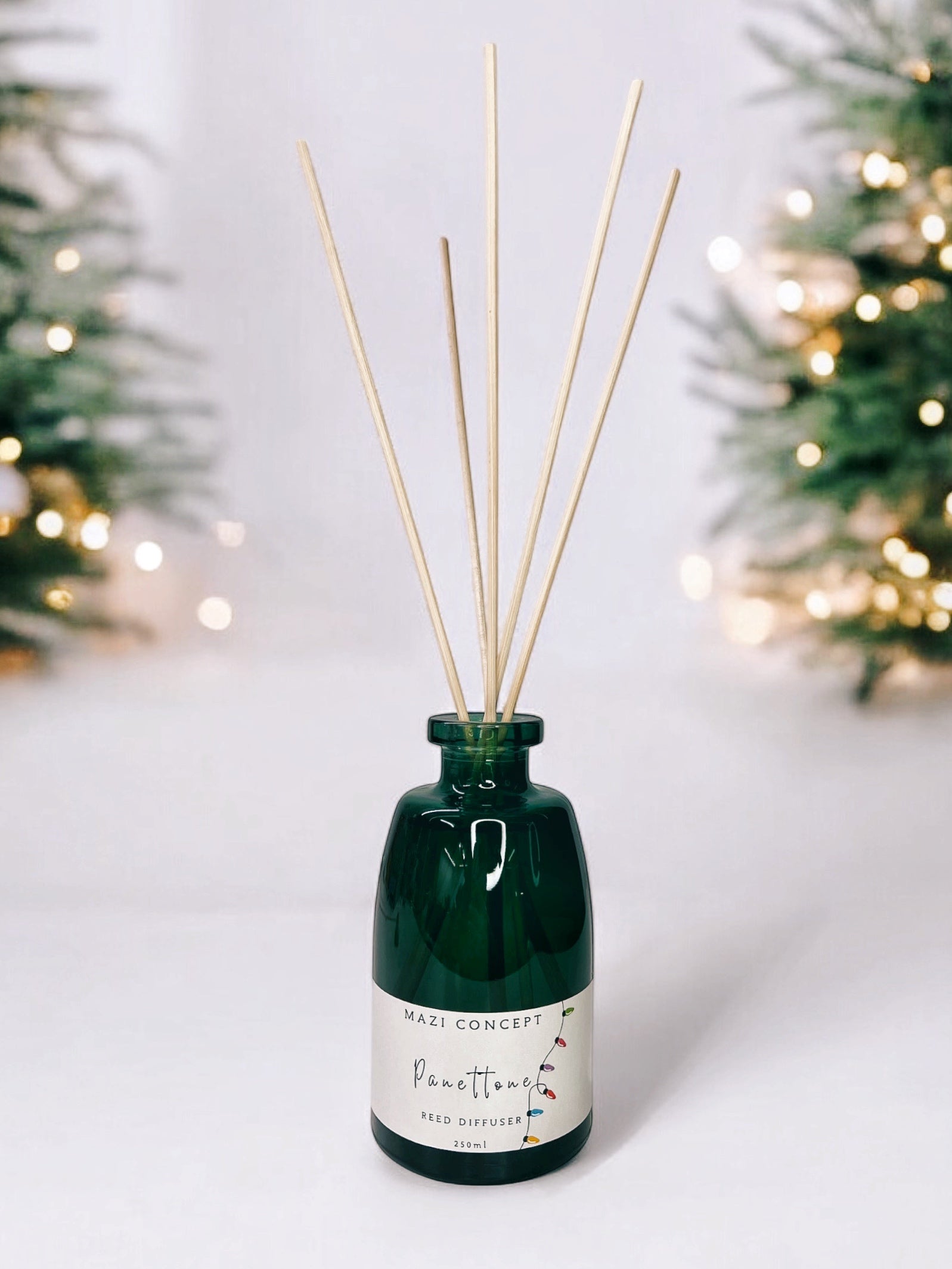 Αρωματικά χώρου με sticks σε γυάλινο πράσινο δοχείο! 250ml υπέροχων χριστουγεννιάτικων αρωμάτων που θα δώσουν στον χώρο σας την πιο γιορτινή χροιά!