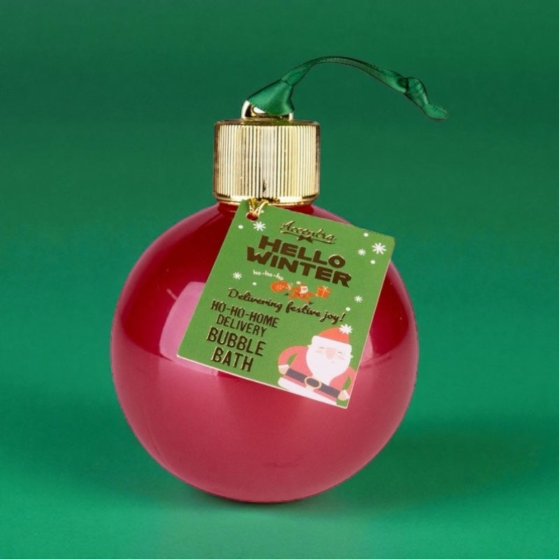 Χριστουγεννιάτικη μπάλα με κορδέλα, που περιέχει αφρόλουτρο με άρωμα Froasted Cranberry!